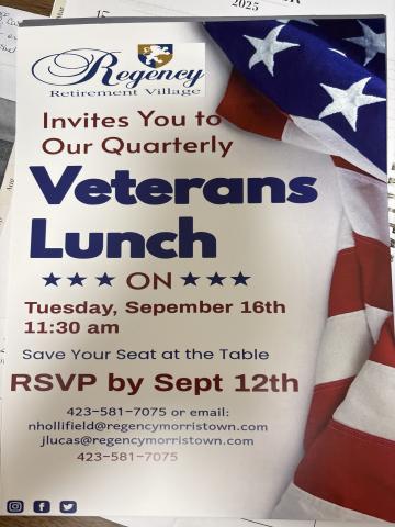 Veterans Lunch at the Regency Retirement Village Starts at 11:30